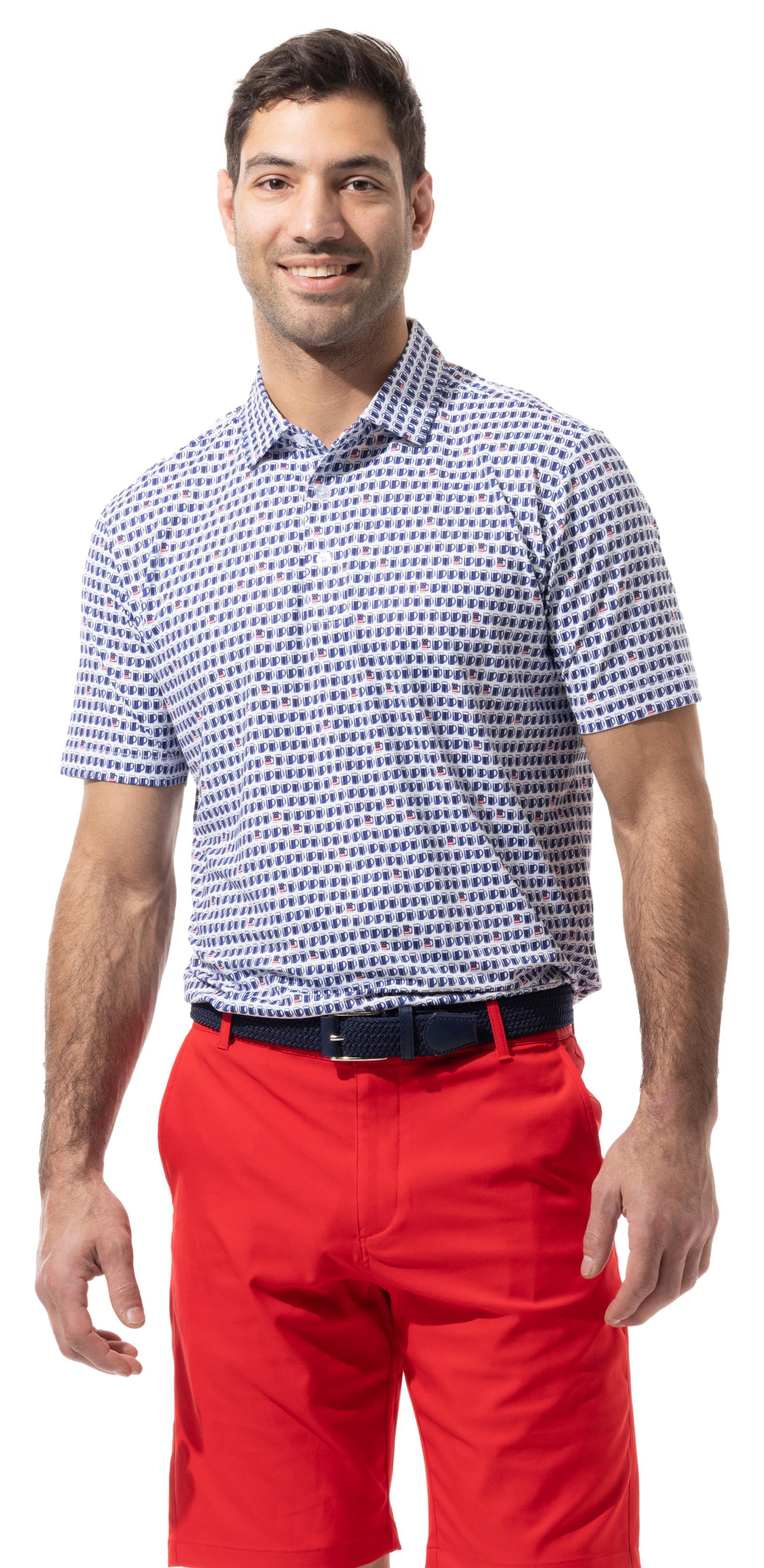 SANSOLEIL MEN'S BUTTON PRINT POLO. US ALE. 900840