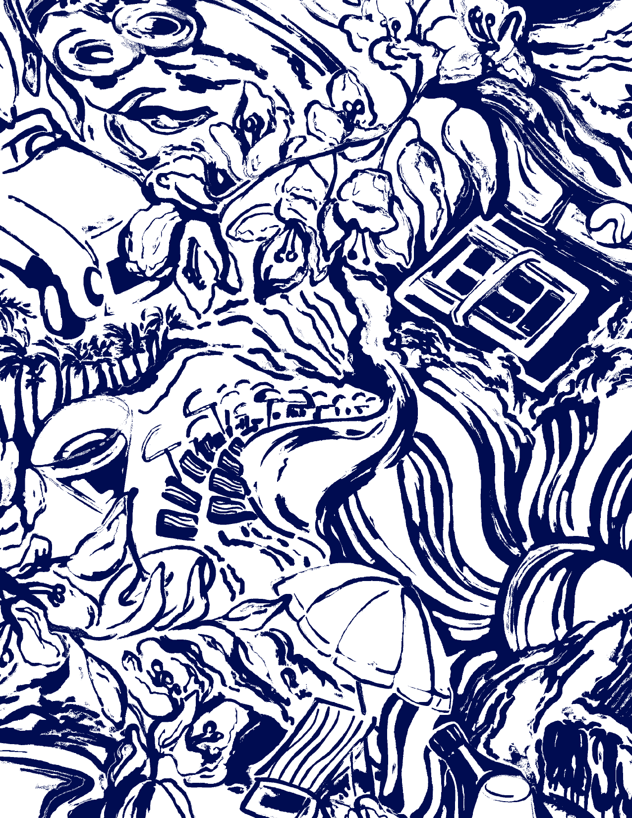 SANSOLEIL 1/4 ZIP PRINT MOCK. GIRLS TRIP. NAVY. 900621