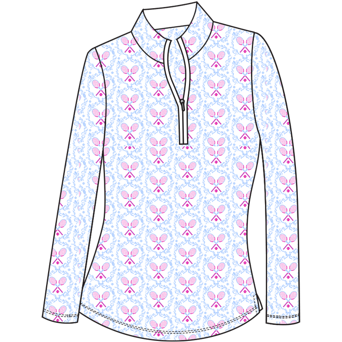 SanSoleil's SolCool long-sleeve 1/4-zip mock with crystal Zipper Puller is the Perfect Top to protect you from the sun and keep you cool in style