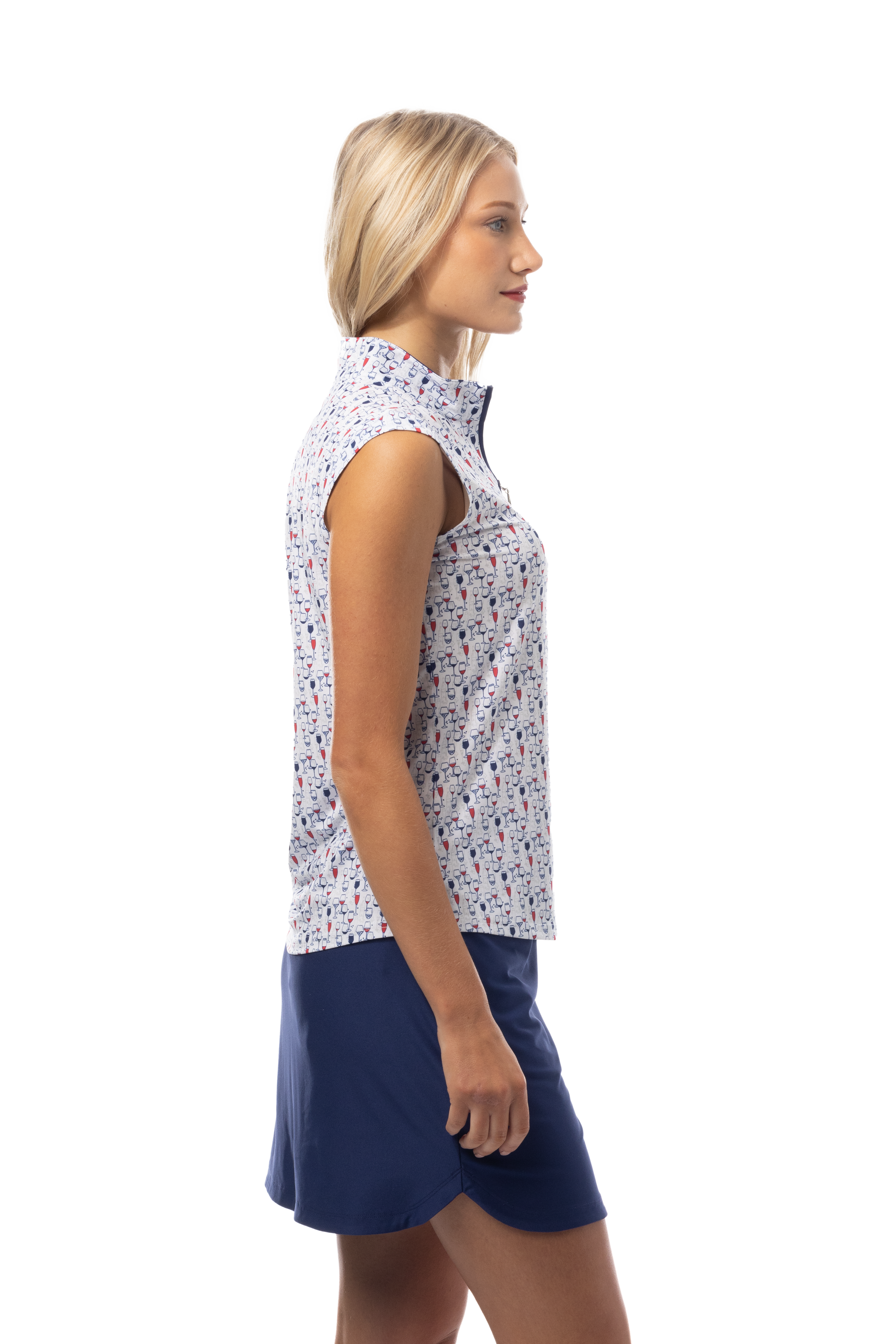This SolCool Sleeveless Print Mock features a Crystal Diamond-Shaped Zipper Puller, UPF 50+ Sun Protection, plus extra COOLING. SanSoleil's SolCool Ultra Lightweight fabric reduces skin temperature by 5%.