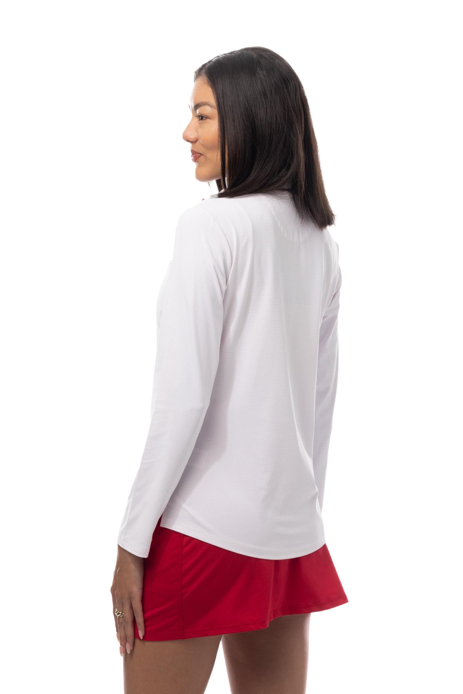 SanSoleil's Long-Sleeve 1/4 zip top utilizes our new SolAir Ultra-Mesh technology fabrics.