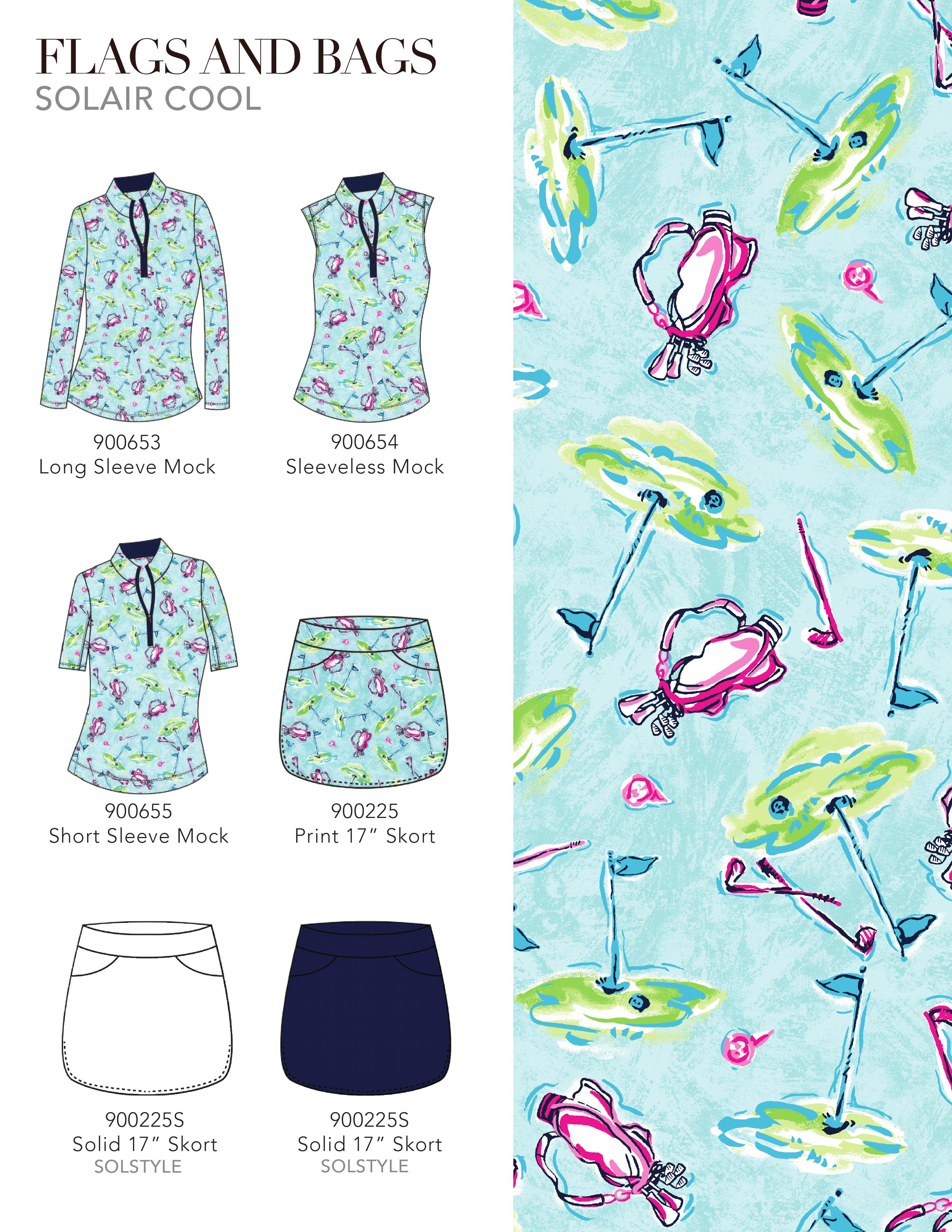 **SolStyle Printed Golf Skort** This SolStyle printed golf skort is ideal for a round of golf. It is lightweight and features moisture-wicking technology to keep you cool on the course. The easy pull-on style features a comfortable stretch waistband and built-in light-compression shorts.