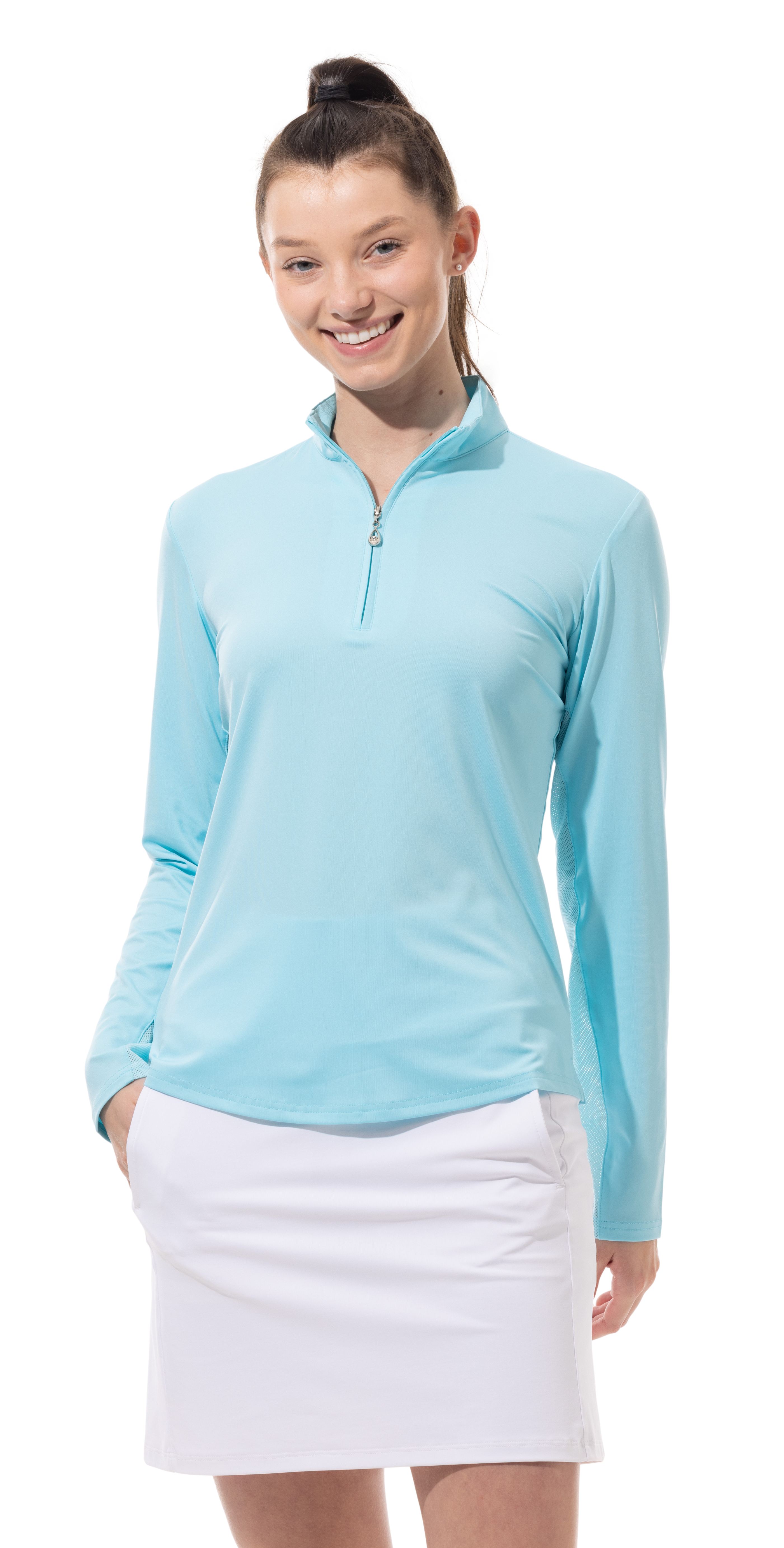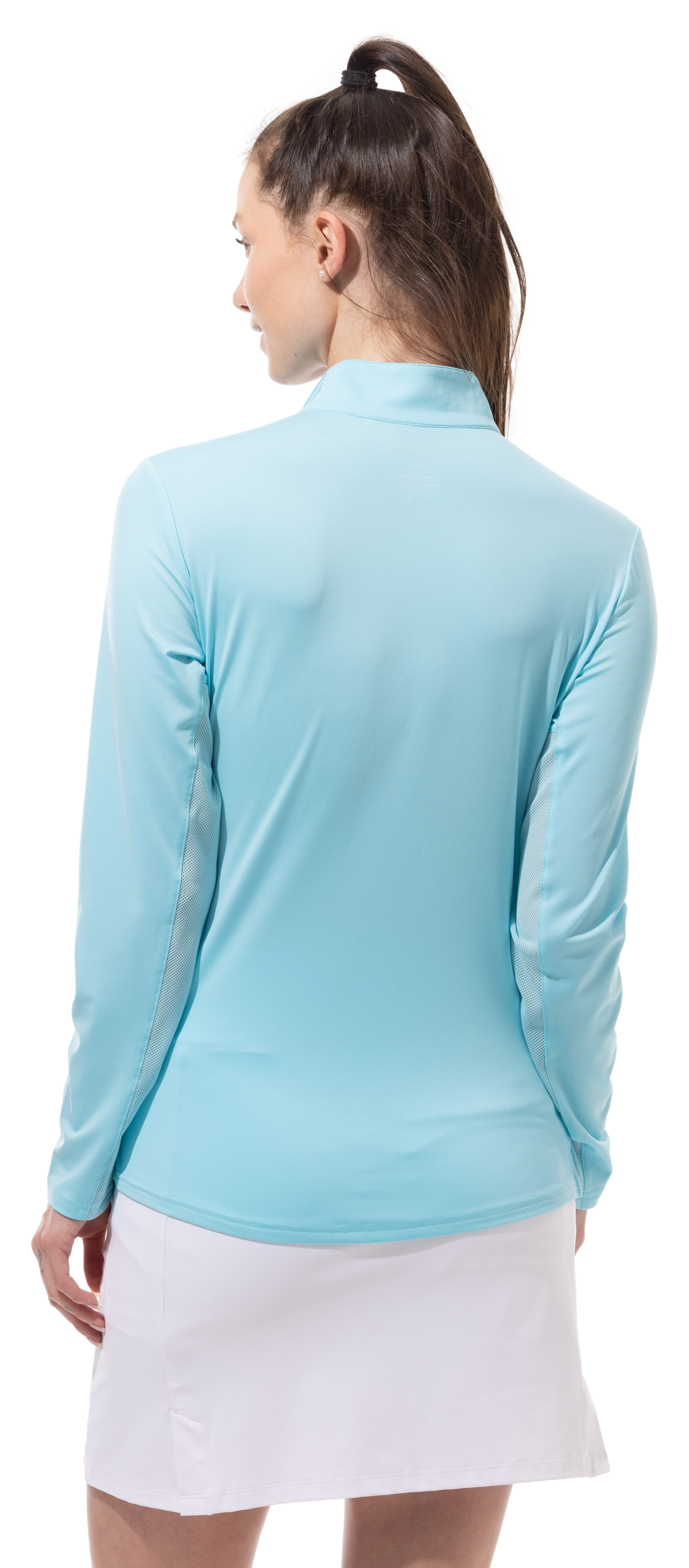 900434 SunGlow L/S Solid Mock w/Swarovski Zipper Pull. Cooling plus UPF 50+ Sun Protection.