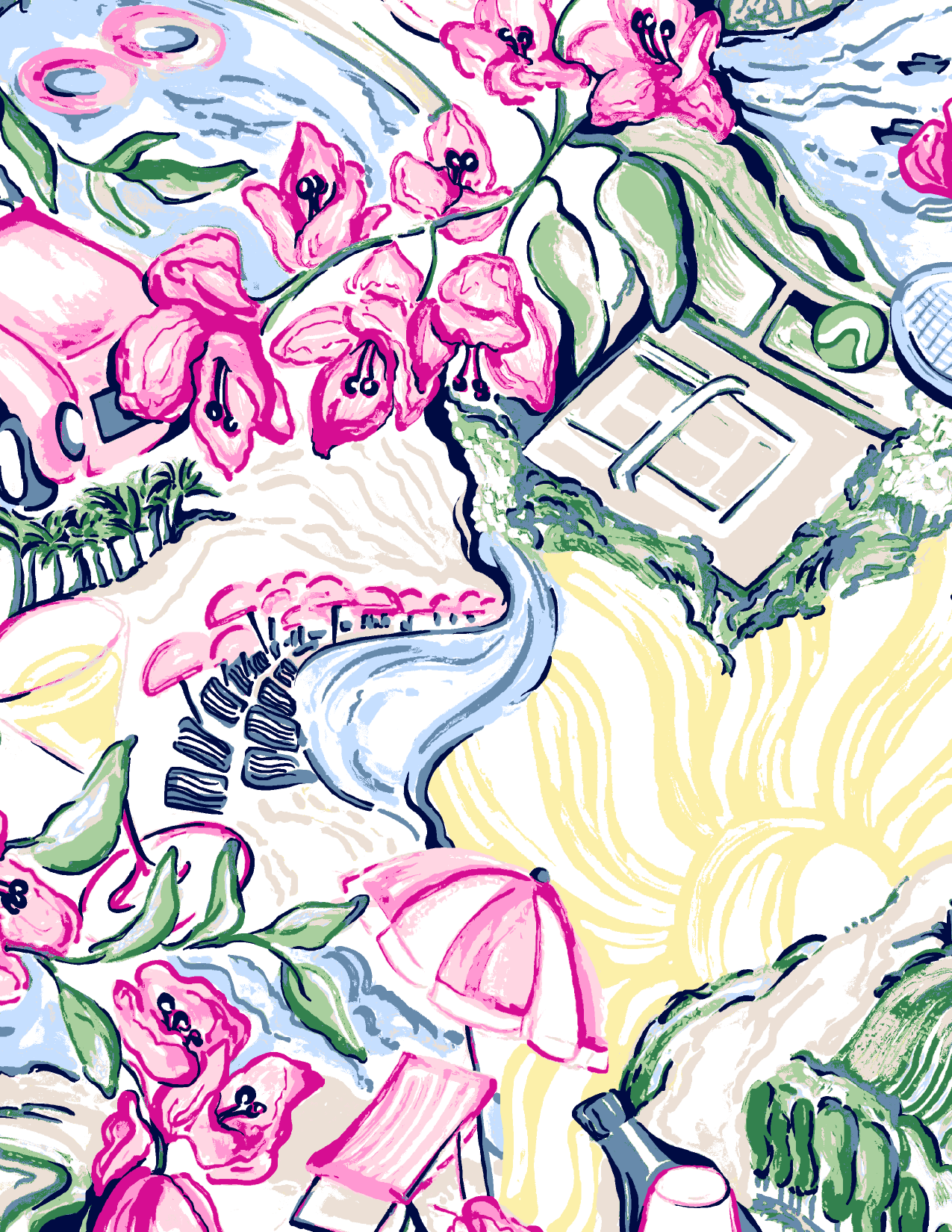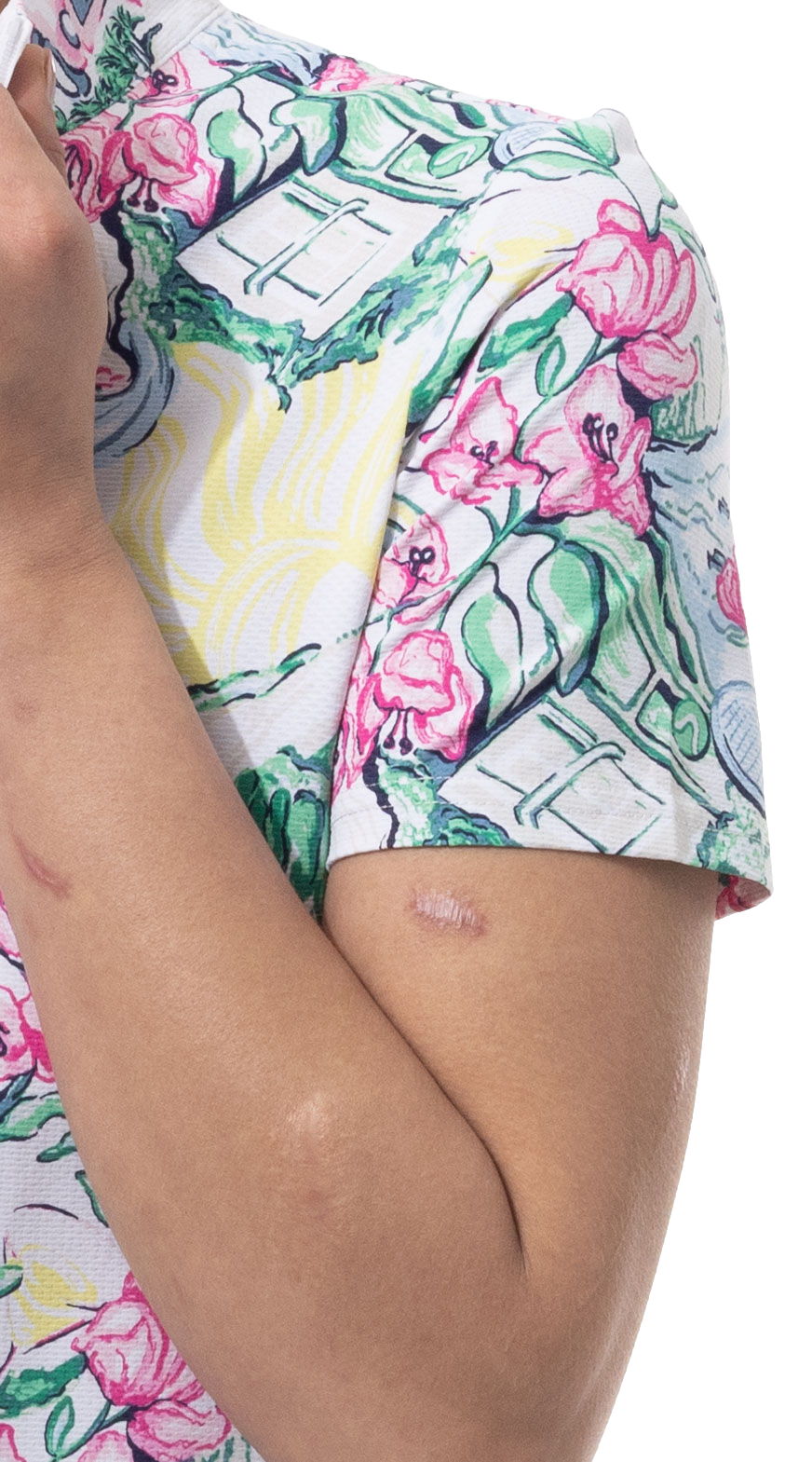 SanSoleil 1/4 Zip Short Sleeve Print Mock. GIRLS TRIP. MULTI. 900628