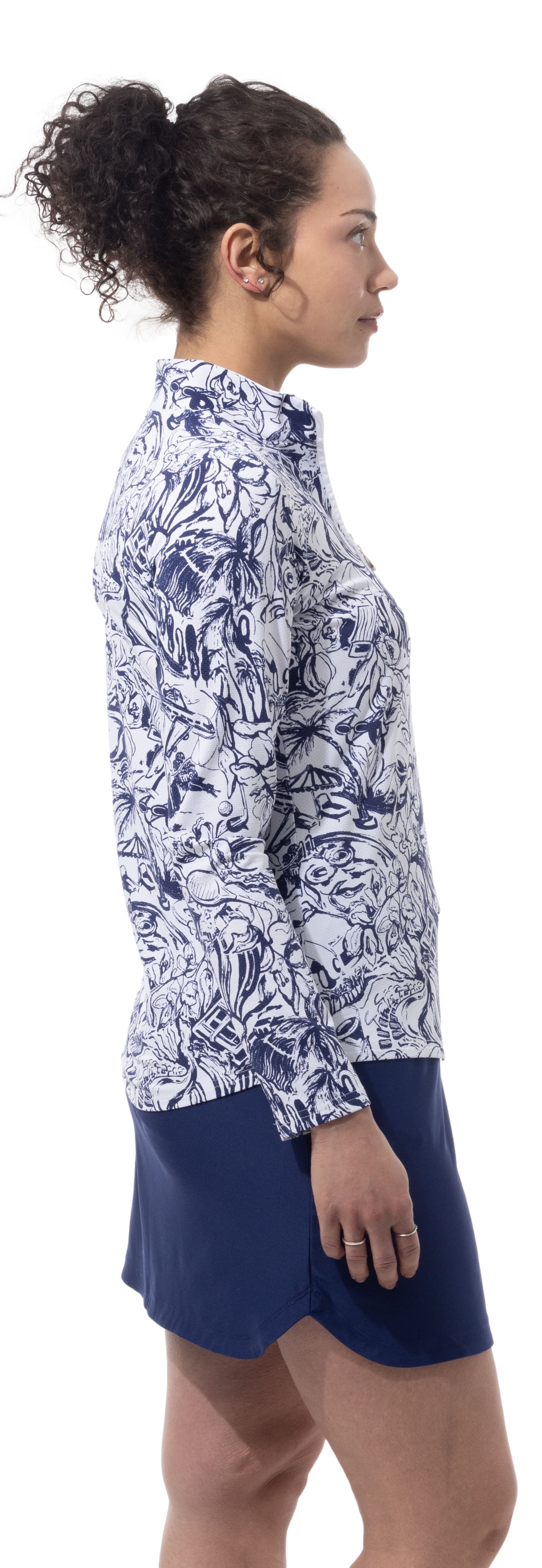 SANSOLEIL 1/4 ZIP PRINT MOCK. GIRLS TRIP. NAVY. 900621