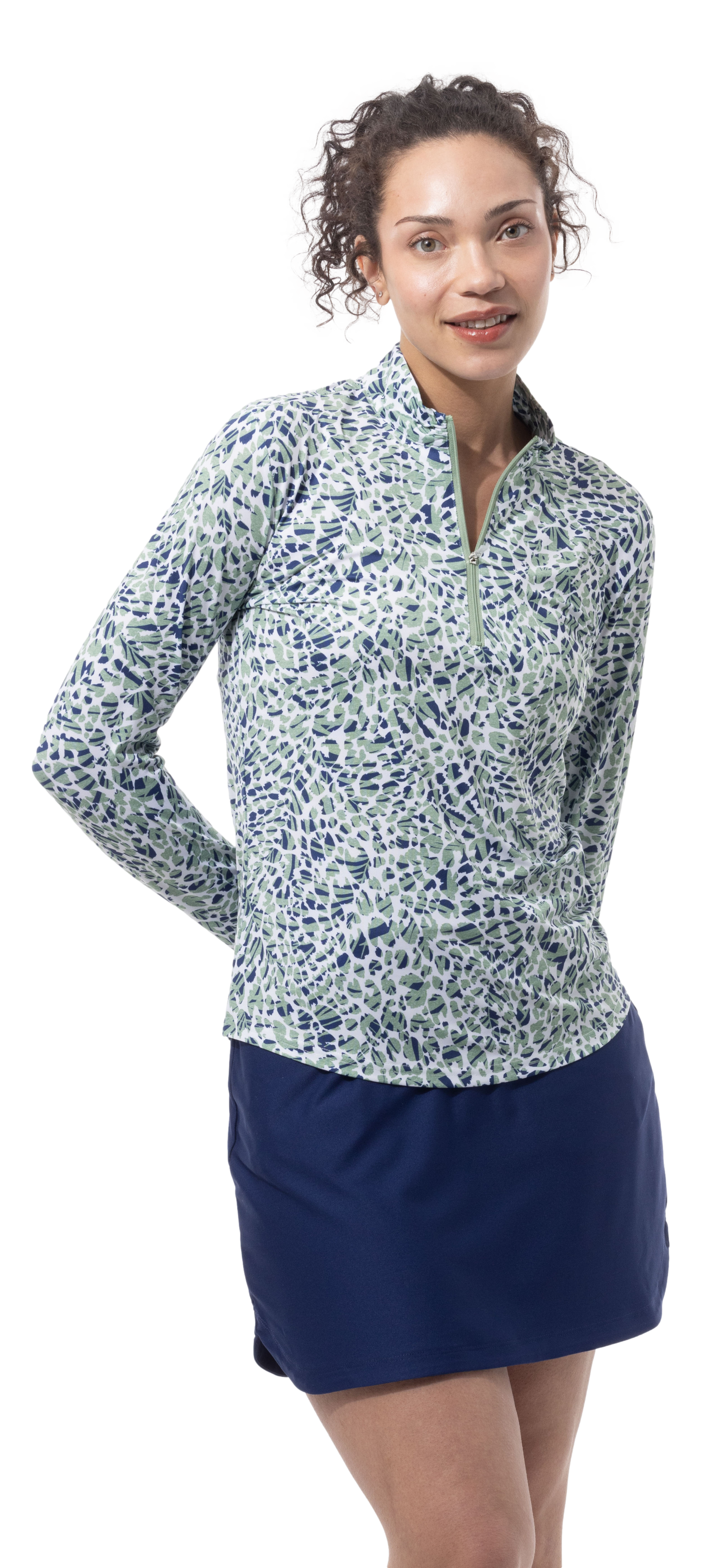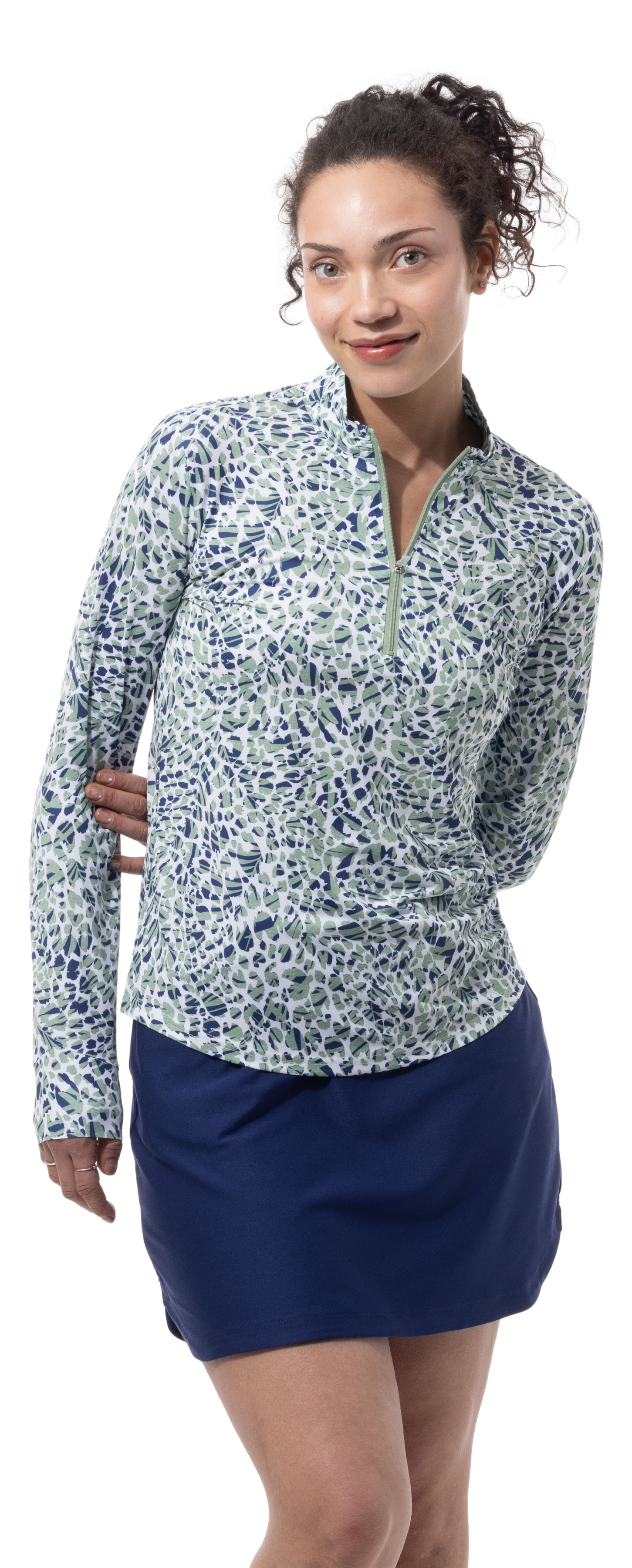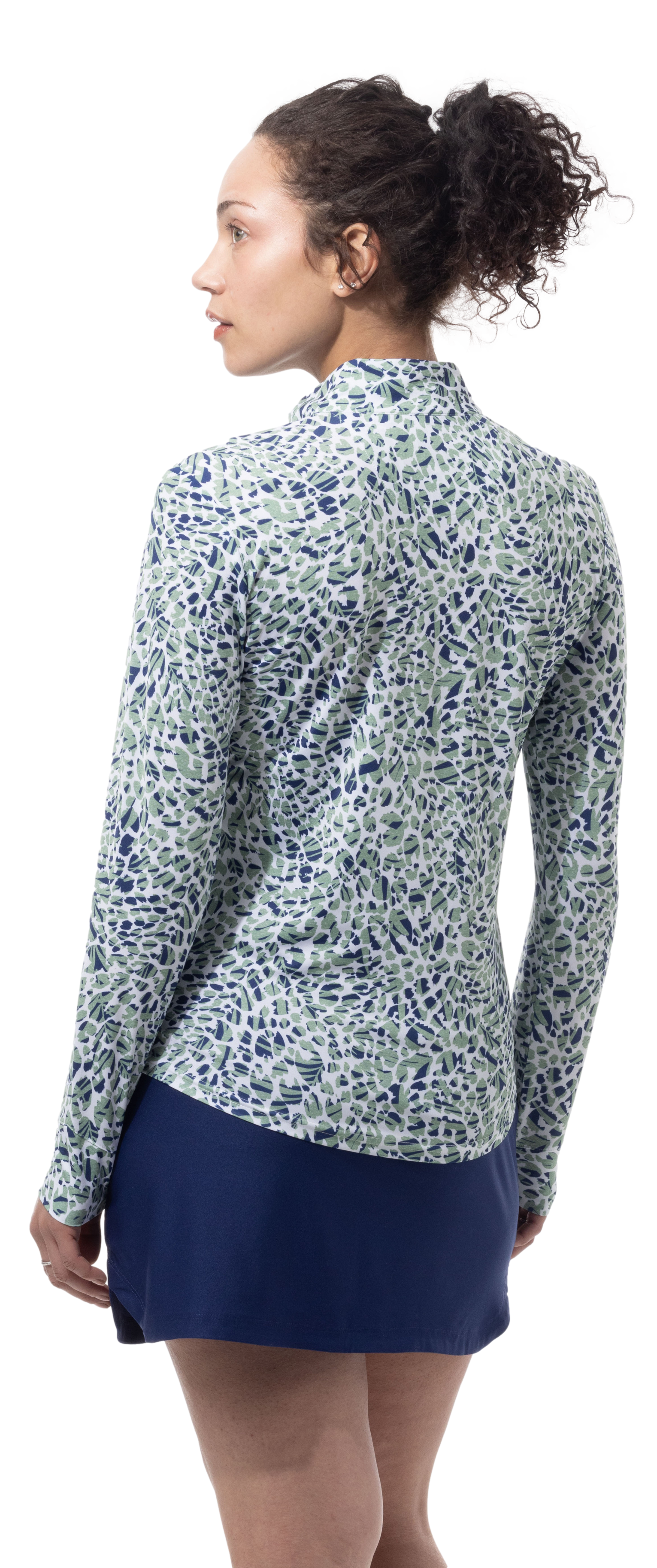 SANSOLEIL SOLMELANGE 1/4 ZIP PRINT MOCK. JUNGLE CAT. MOSS. 900453P