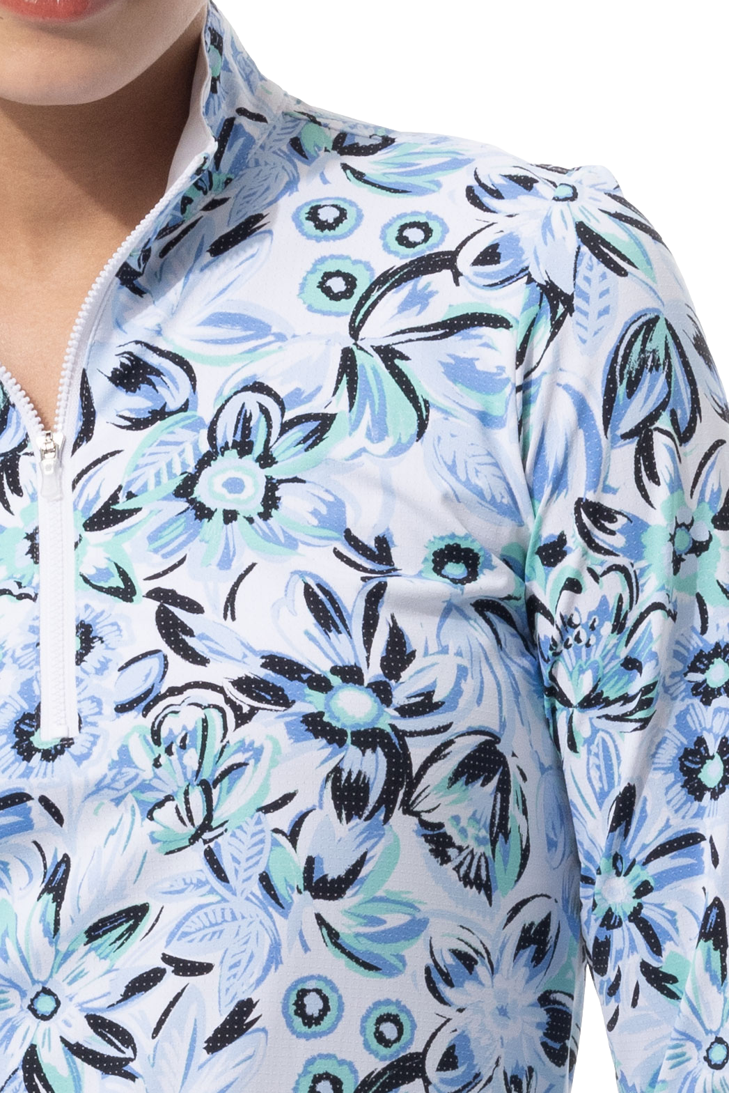 SANSOLEIL COOL ULTRA-MESH ZIP MOCK. DAVINA. BLUE. 900653