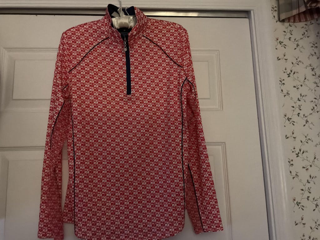 SanSoleil's SolCool 1/4-zip mock with crystal Zipper Puller is the Perfect Top to protect you from the sun and keep you cool in style.
